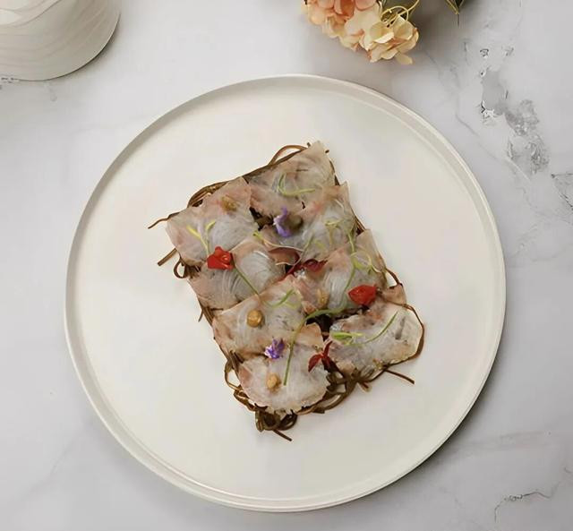 用鱼鳞提取的胶原蛋白冻,代替了传统的皮冻,既环保又新颖。